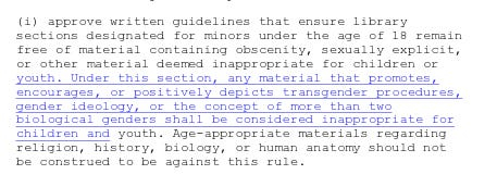 3. The proposal is buried in a section on explicit content and obscenity. Alongside pornography and graphic material, a new provision tells libraries what they cannot make available to anyone under 18. It reads:
