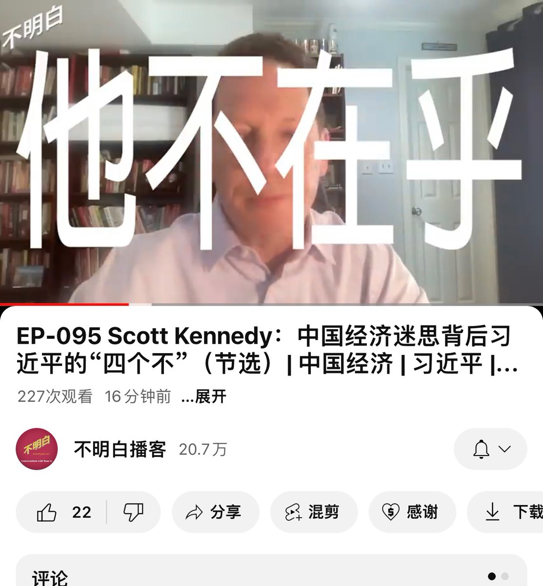 EP-095 Scott Kennedy:中国经济迷思背后习近平的“四个不”(节选)| 中国经济 | 习近平 | 中美关系 | https://t.co/zCCPB9LCus via @YouTube https://t.co/tYkXHJs0Ls