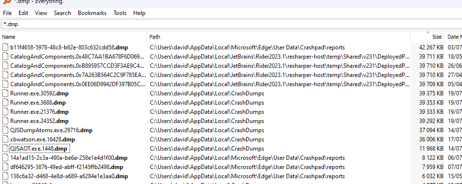 once in a while search for *.dmp on your computer, you might find yourself with several hundred Mbs in crash dumps across several software that you don't need anymore