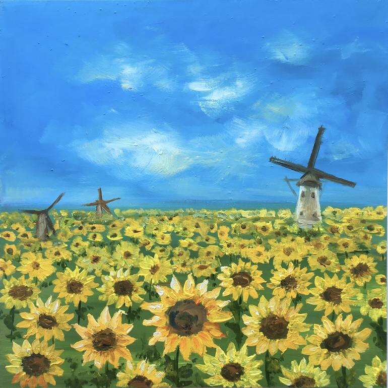 Sunflowers Field with Windmills