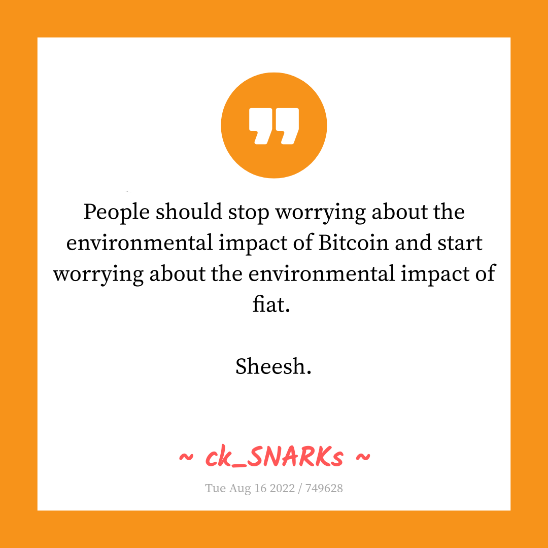 People should stop worrying about the environmental impact of Bitcoin and start worrying about the environmental impact of fiat.