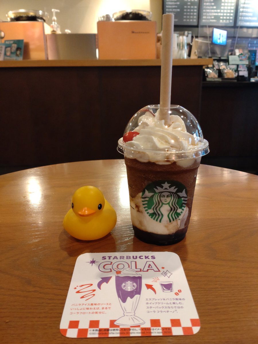スタバでスターバックスコーラフラペチーノをいただきました@肥後橋南店。今回はコーラの炭酸抜きといった感じでまさにアメリカ版純喫茶という印象でしたな。というわけでゴチでした!