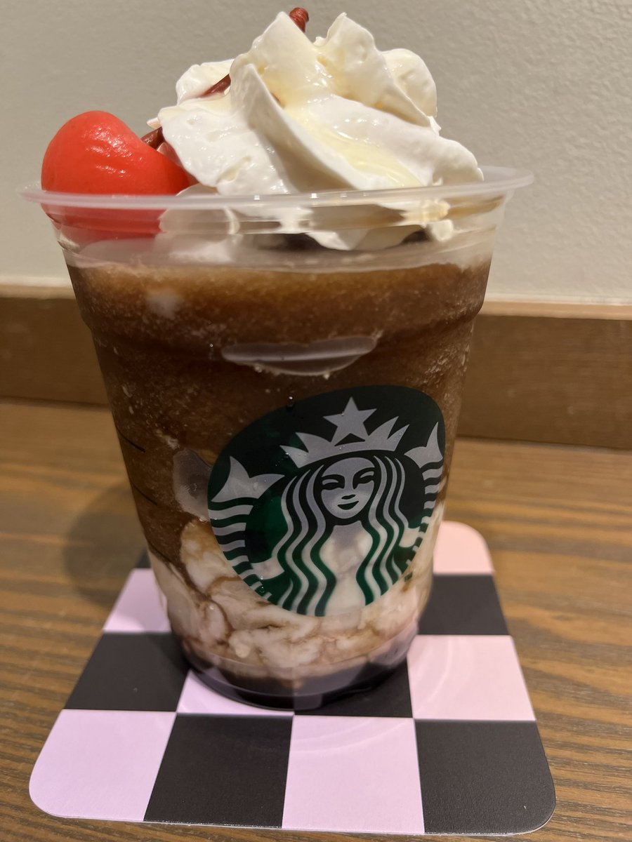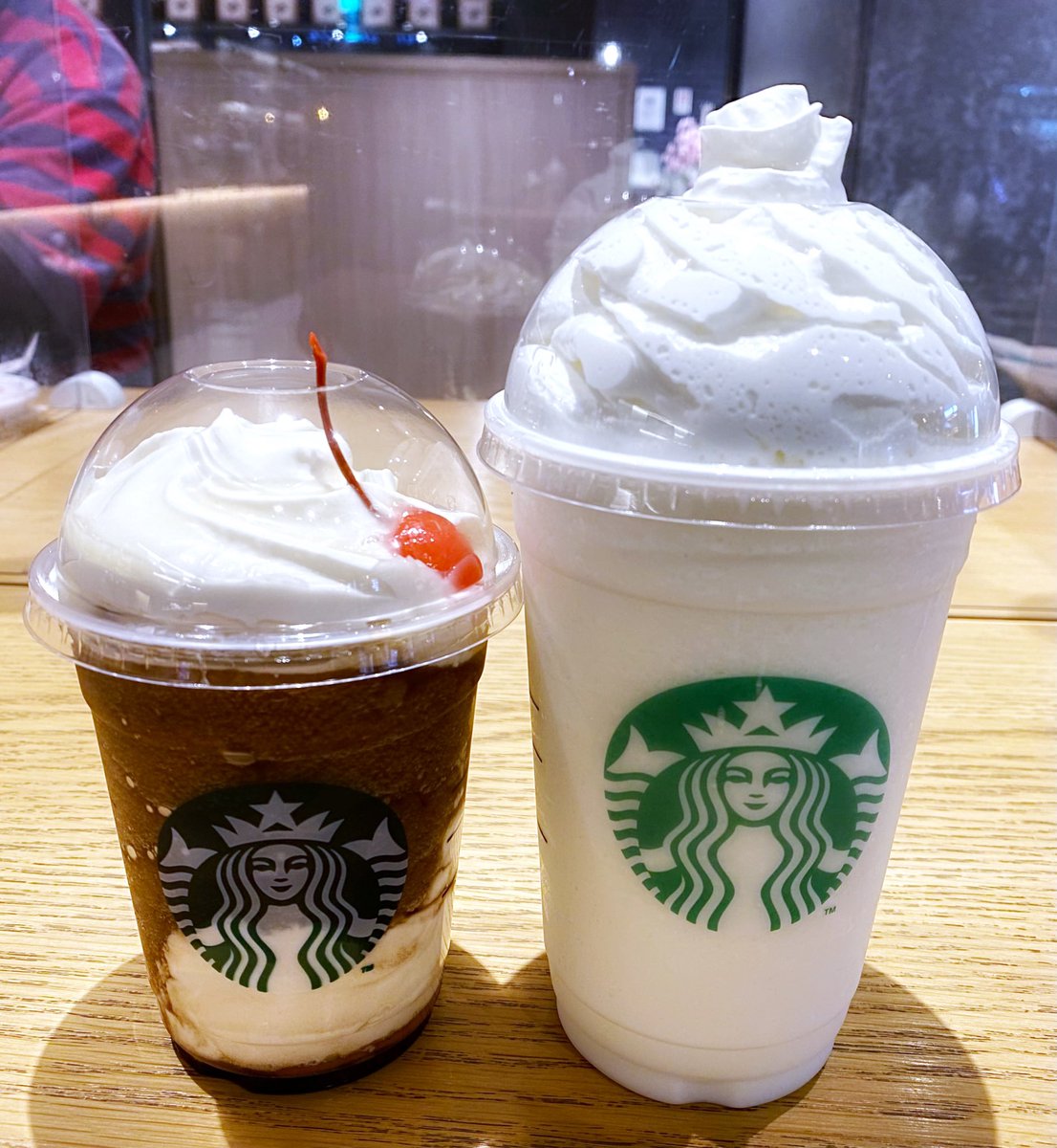 今日から新作発売らしいから今日は仕事終わりに『#コーラフラペチーノ』と『#バニラクリームフラペチーノ』で少しチルってくかって思ってバニラの方を"生クリーム多め"で頼んでみたらカップの蓋から溢れんばかりの量のクリーム乗せてくれたぜ