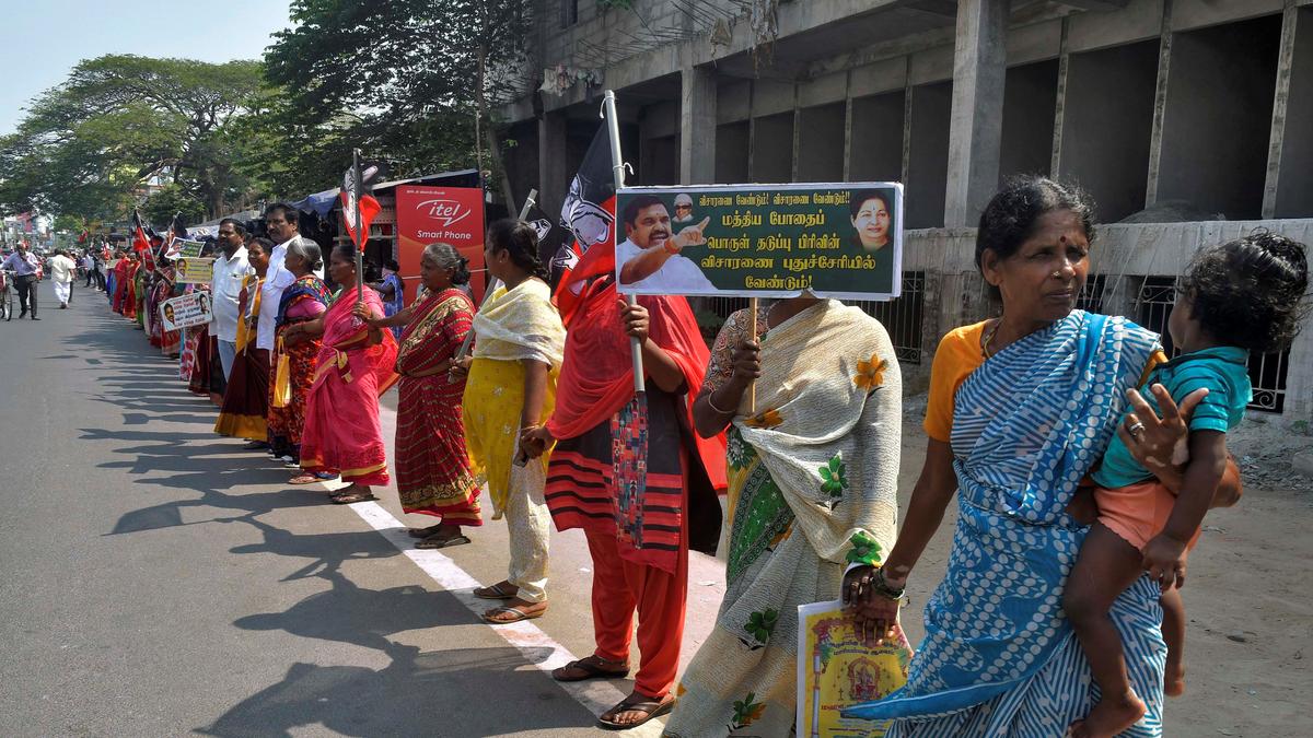 AIADMK workers form human chain against drug menace #press