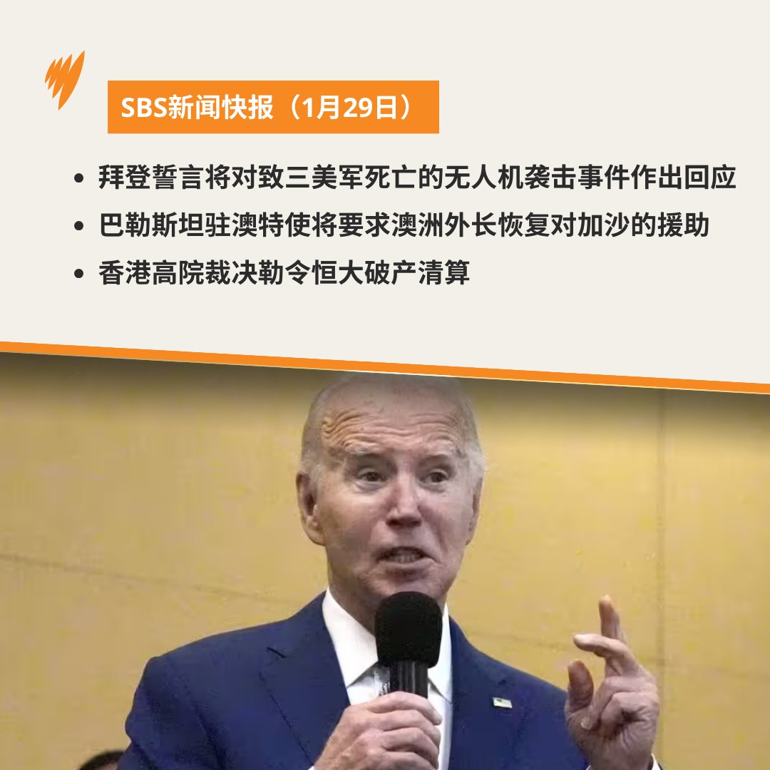【#SBS新闻快报】约旦东北部发生无人机袭击事件造成三名美军士兵死亡,数十人受伤,美国总统乔·拜登(Joe Biden)誓言对此作出回应;香港高院裁决勒令恒大破产清算,详情:https://t.co/6nqd9289rC https://t.co/bjMPJmZXgp