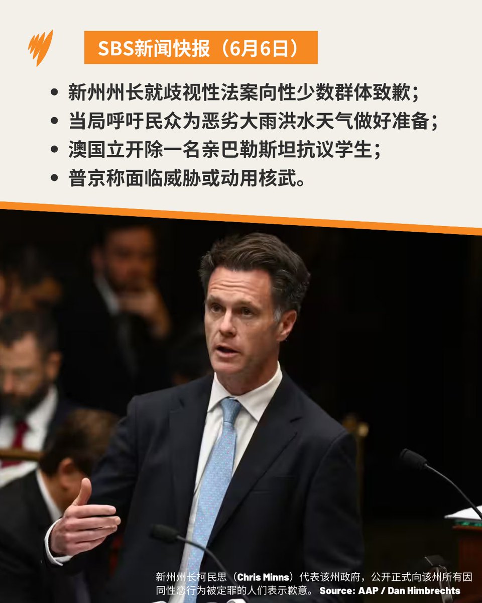 【#SBS新闻快报】新州州长柯民思(Chris Minns)代表该州政府,公开正式向该州所有因同性恋行为被定罪的人们表示歉意。详情:
