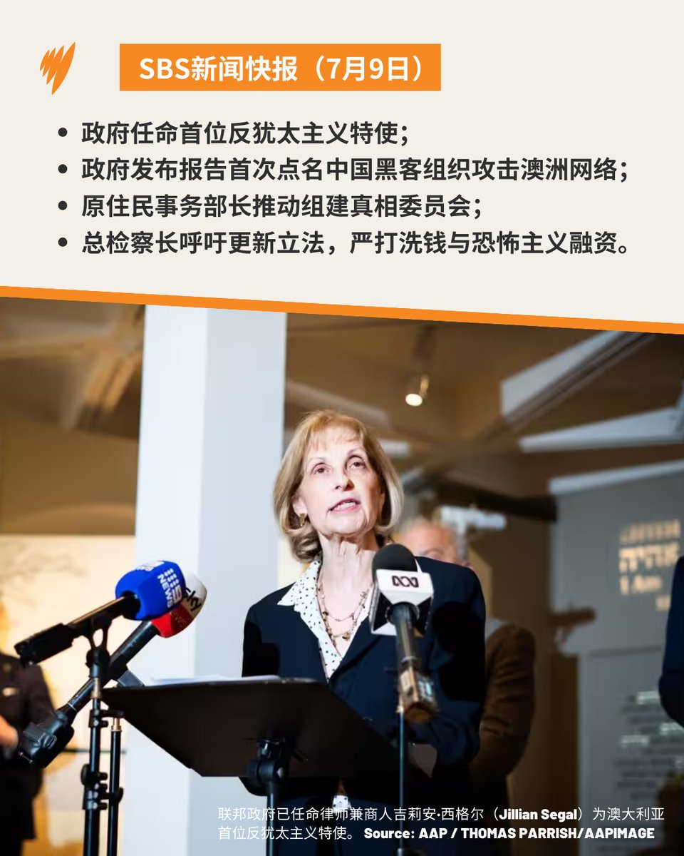#SBS新闻快报 联邦政府已任命澳大利亚首位反犹太主义特使,预计这一职位将与伊斯兰恐惧症特使一同公布。特使将就反犹太主义和社会凝聚力等问题向政府提供建议。详情: