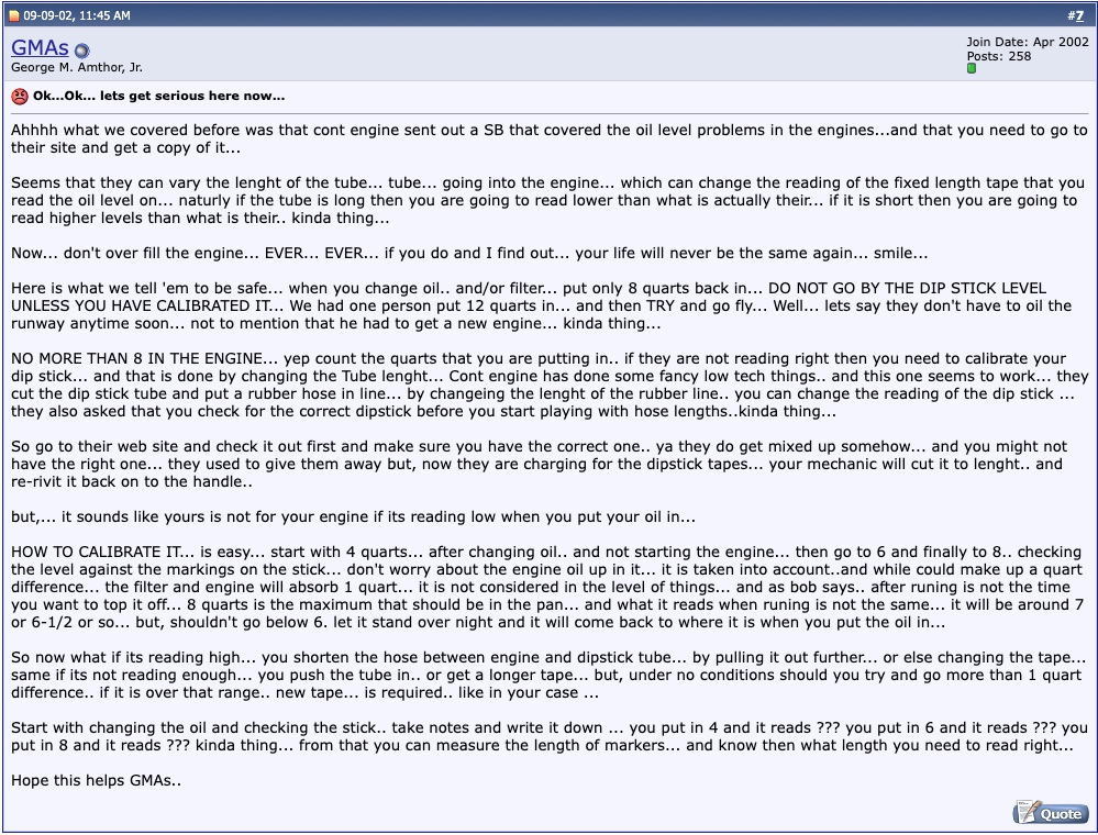 Also I’m more confused than before about how much damn oil a skymaster needs. “Oh hoidy ho I need to calibrate the dipstick in order to avoid blowing up my engine” sounds completely insnae