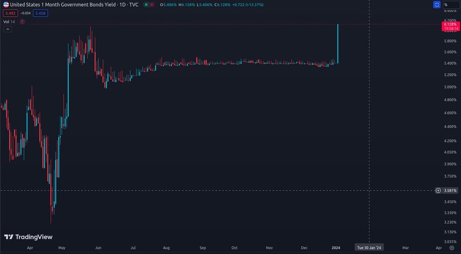 Fun fact, at the time of the pump in bitcoin, this was happening in one-month US bond ๐ค