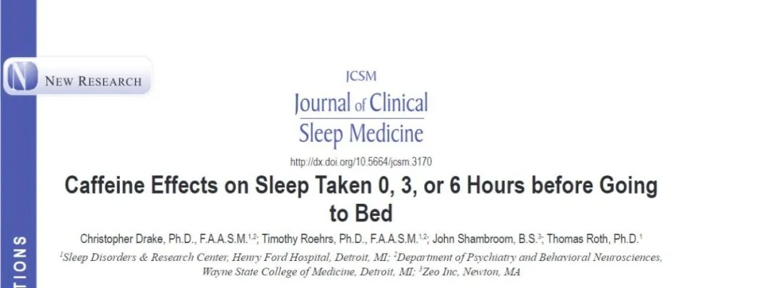 美国《临床睡眠医学杂志》发表过一篇论文,研究人员对睡前0小时、3小时和6小时摄入含固定剂量咖啡因(400毫克)的咖啡与睡眠破坏影响进行了分析比较。