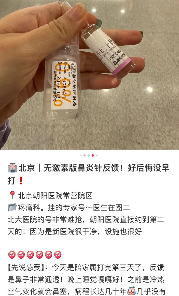 在社交平台,神奇的“鼻炎针”突然走红,不少备受鼻炎困扰的年轻人都去打了“鼻炎针”。