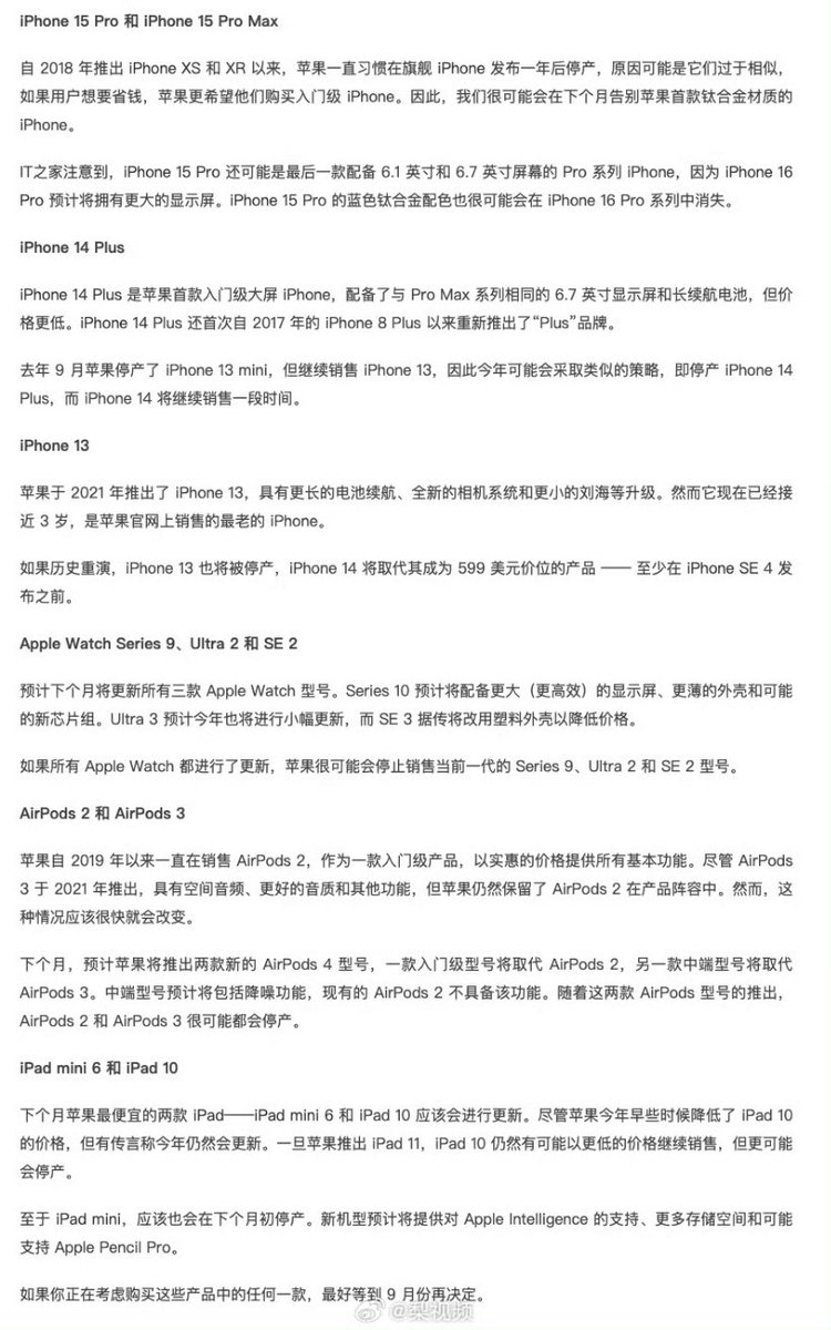 据 9to5Mac 报道,以下是预计将在下个月从 Apple Store 下架的几款苹果产品: