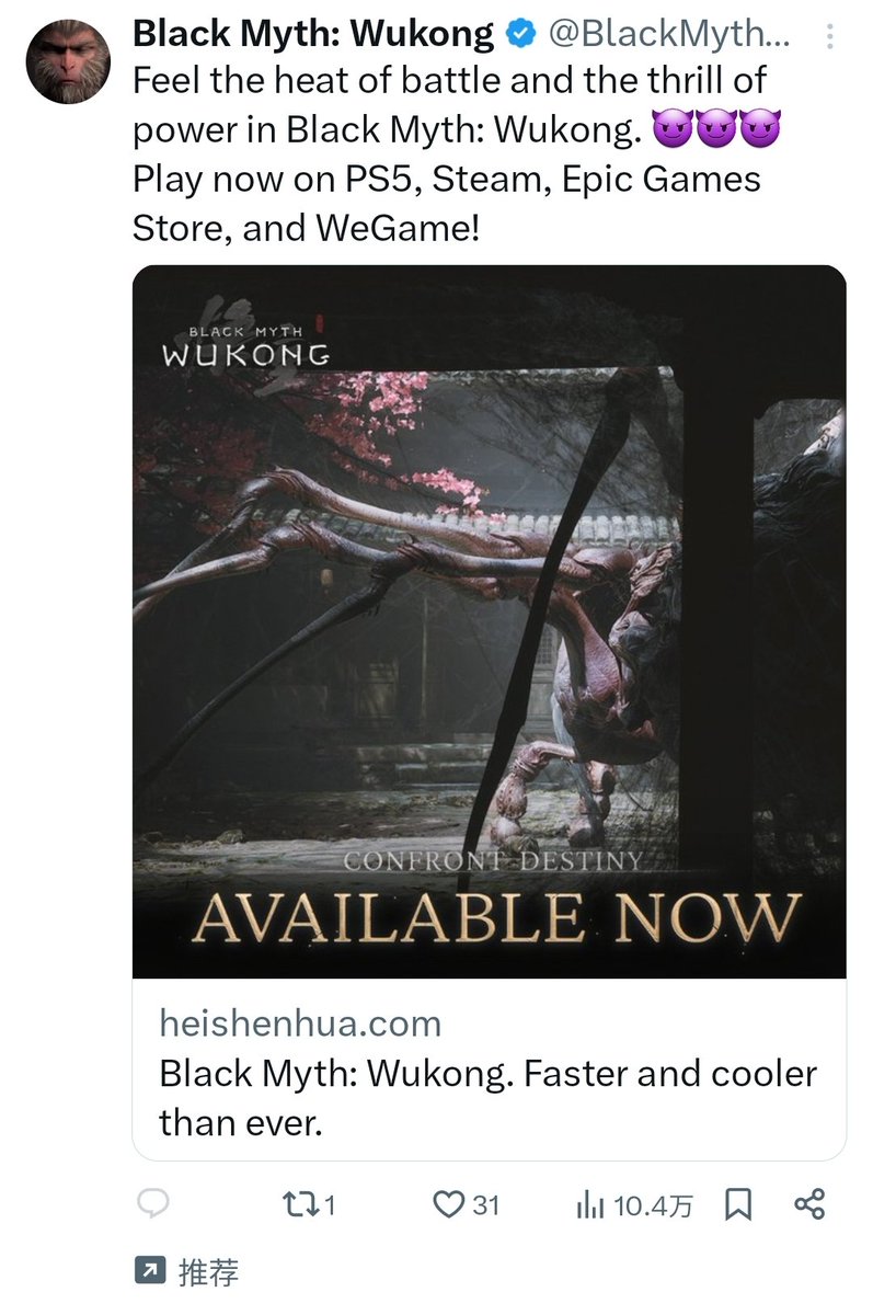 你们有没有发现,现在评论区投放的广告大多是黑悟空? https://t.co/B2xleinch4