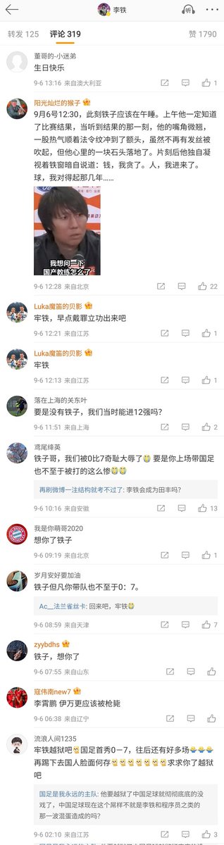 国足0:7负于日本队后,李铁的微博沦陷了。 https://t.co/fK30Ga48fz