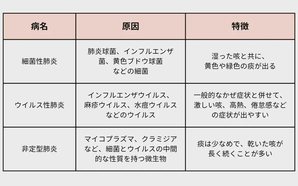 厚生劳动省指出,支原体肺炎会长达数周甚至数月的咳嗽。估计约有10%的人会得到肺炎,常见的症状为黏液痰、发烧和发冷、呼吸困难、胸痛及倦怠。小于5岁的孩童感染时发烧较少见,但可能会有哮喘、呕吐或腹泻等症状。少数病人会有严重肺炎、气喘发作、脑炎(大脑肿胀)、溶血性贫血、肾功能异常及皮肤疾病等严重并发症。