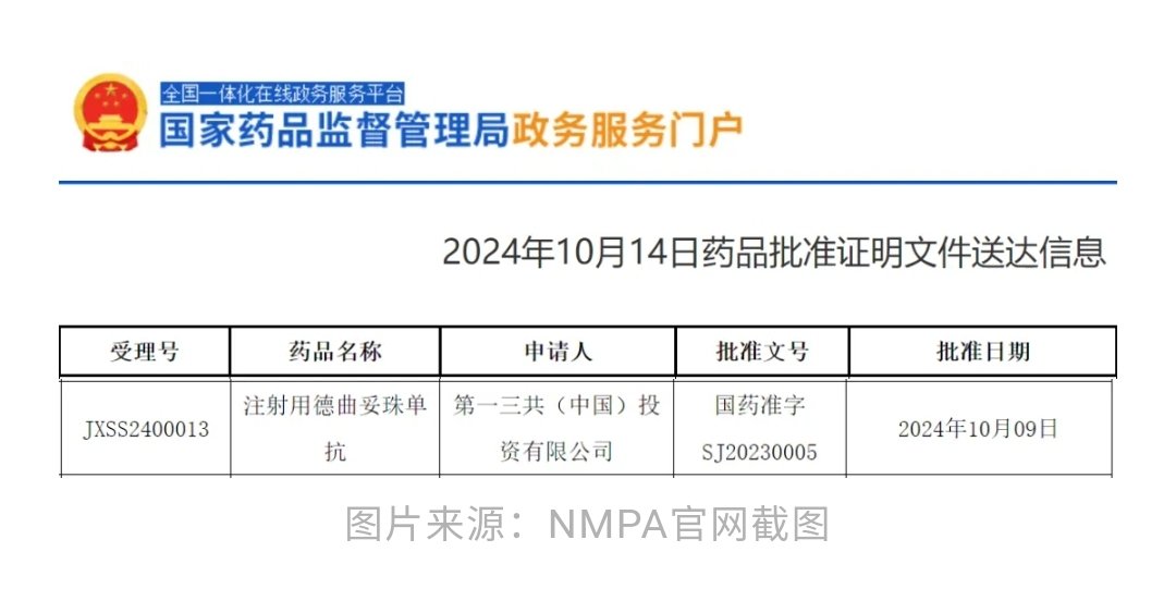 10月14日,由第一三共申报的注射用德曲妥珠单抗(Enhertu,优赫得)肺癌新适应症,已经在中国获得上市批准。