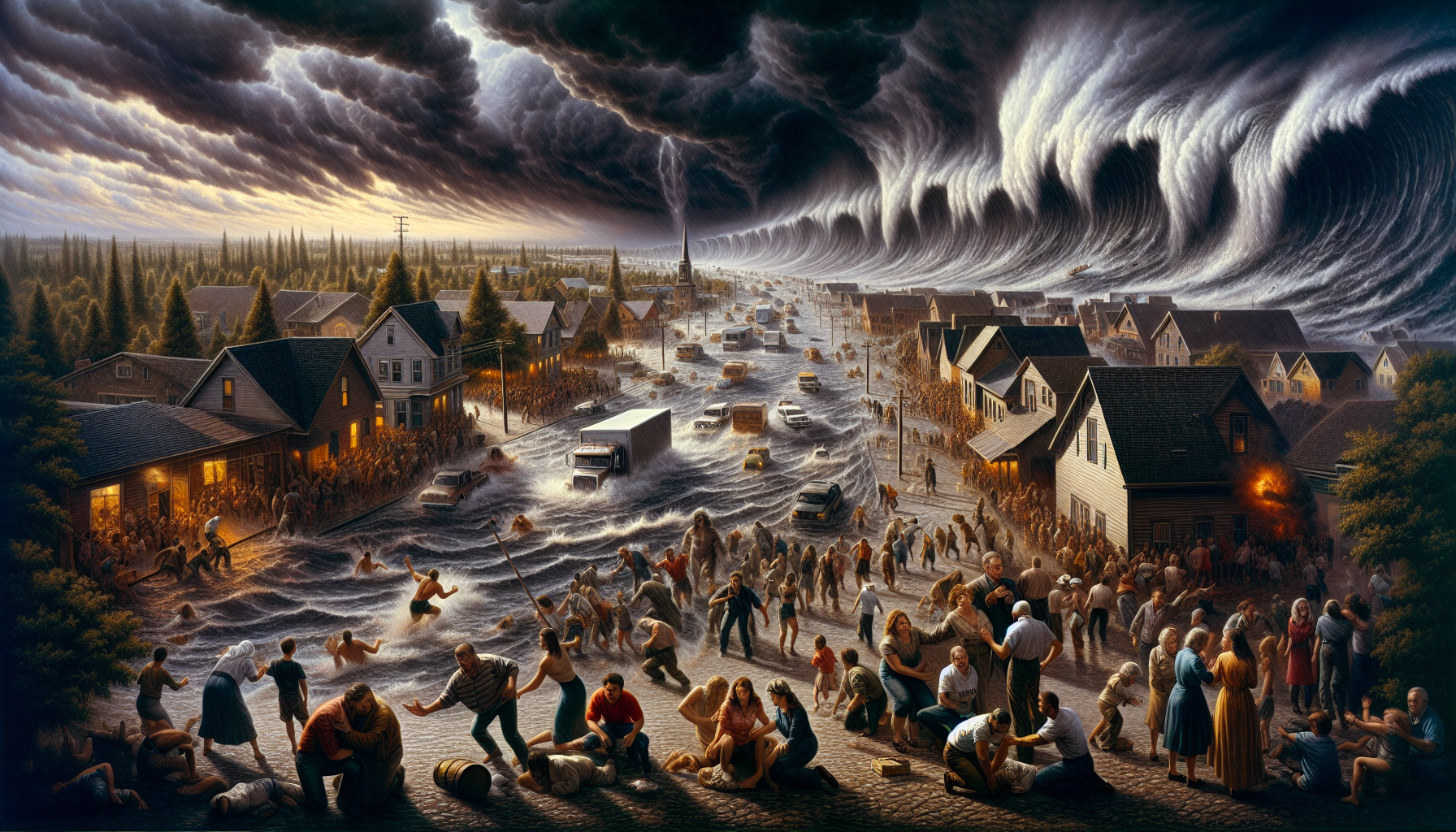 You search for an alternate route around the submerged intersection. After some careful maneuvering, you manage to find a detour that leads you away from the dangerous current. However, as you continue driving, you notice that the water level is still rising rapidly. What do you do?