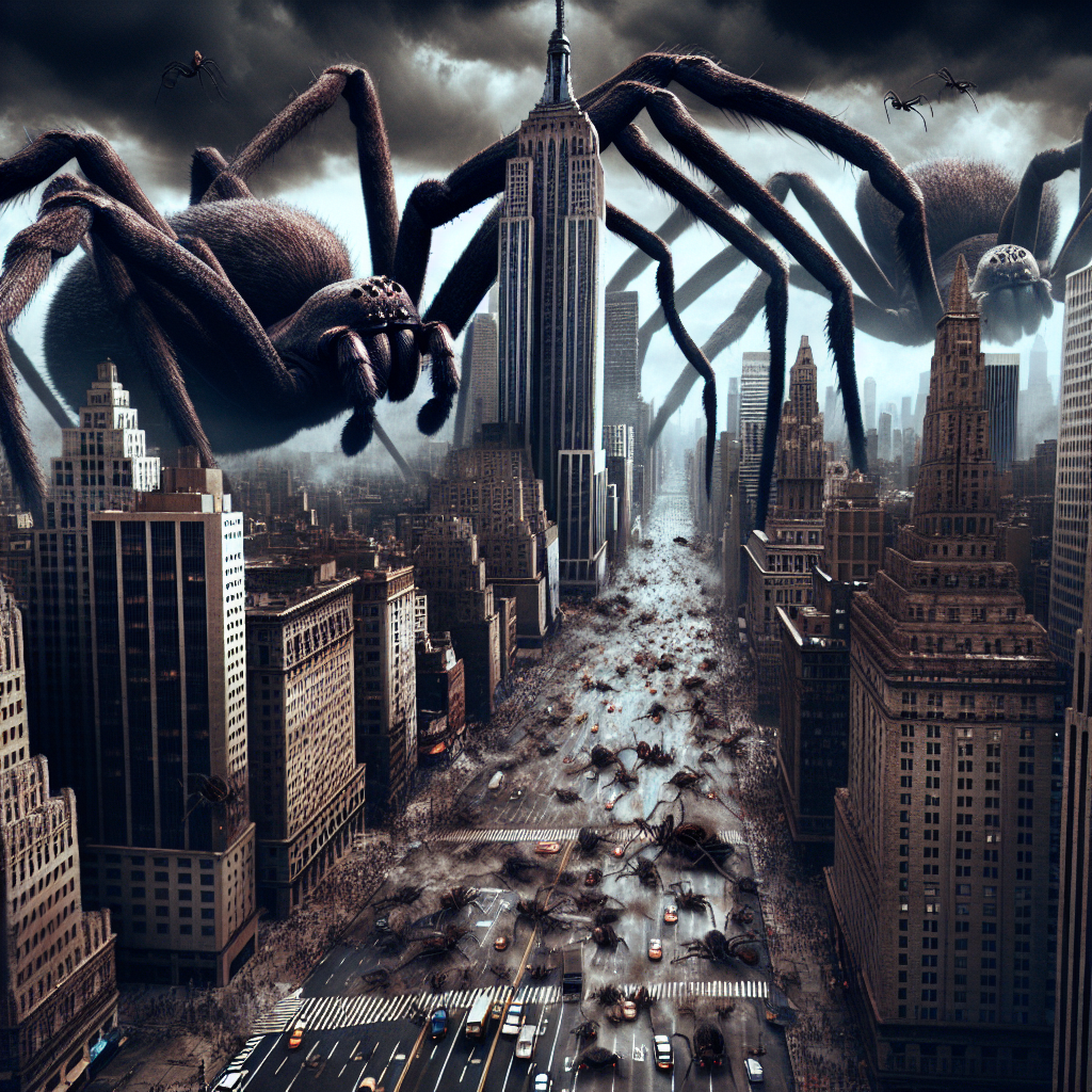 You advise Sarah to make a run for it and meet up at the town's community center. You both agree on a meeting point and hang up the phone. As you step outside, you can hear the eerie sounds of spiders scurrying in the distance. The town is in chaos, with people running and screaming.