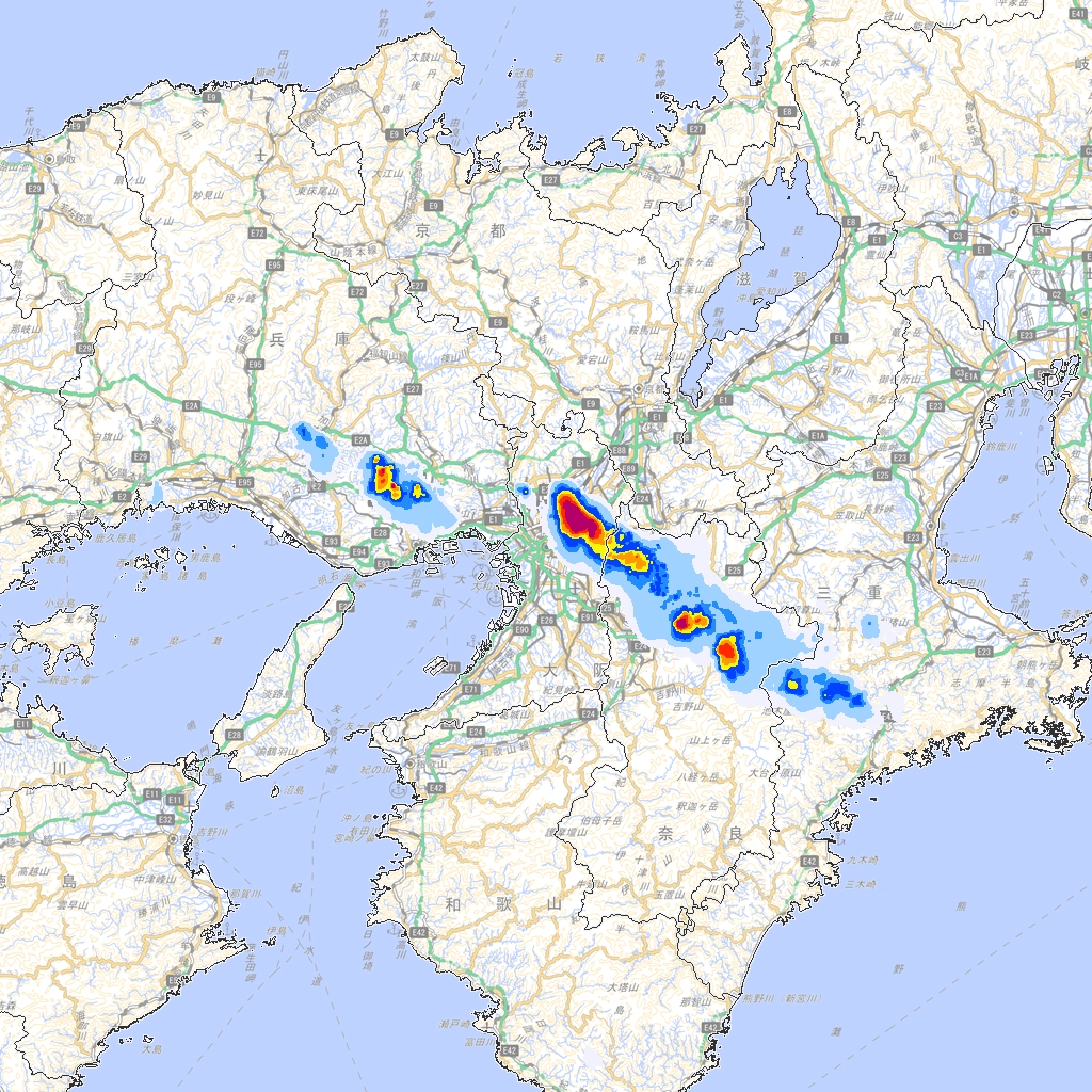 大阪府付近の雨雲の状態です! (気象庁情報)